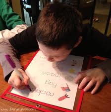 يمكنك أن ترسمى حرفا مرة واحدة او اربع بشكل كبير على ورقة بالنقط ليمشى فوقها طفلك, تذكرين هذه الطريقة من أيام الحضانة, الفكرة التى رأيتها على موقع و اعجبتنى جدا أن نضع هذه الورق داخل كيس سندوتشات أو مغلف شفاف و نعطيها للطفل ليرسم فوق النقاط باستخدام قلم السبورة البيضاء, الطفل سيفرح بقلم الكبار السلس فى الرسم, و انت ستفرحين ﻷنك لست بحاجة لرسم اﻻف اﻷوراق بل واحدة و تمسيحها بمنديل مبلل ليستخدمها أكثر من مرة.