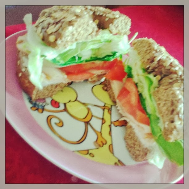 | الغداء: حبة خبز البيجل بالحبوب الكاملة (يمكن استبداله بأى خبز كامل) مع جبن الفيتا, بيضة مسلوقة, ثمرة طماطم كاملة و جرير وخس |