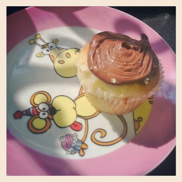 | الحلو: ١ كب كيك قليلة الدسم (نصف كمية الزيت ببديل تفاح مهروس) ببعض النوتيلا على الوجه |