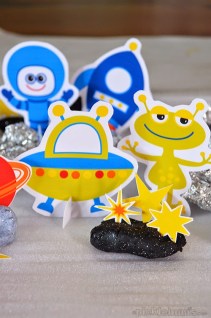 مشروع خفيف الظل لمحبى الصلصال…يمكنك خلط بعض الجليتر مع الصلصال و صنع اشكال مختلفة واستخدام الفويل لصنع مجسم فضائى ثم تقومين بطباعة هذه اﻷشكال الفضائية او ترسمينها ليلونها اطفالك وتثبتوها فى الصلصال لصناعة عالم فضائى…