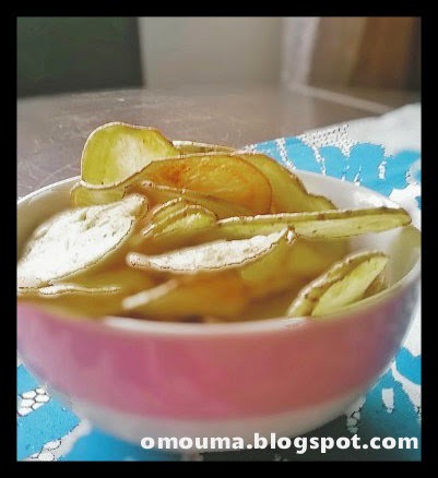 ملحوظة ﻻ نبحث عن تقطيع مثل صينية البطاطس بالطبع فقط اكثر سمكا قليلا من التشيبس المعتاد…و حاولى ان تكون القطع بنفس السمك